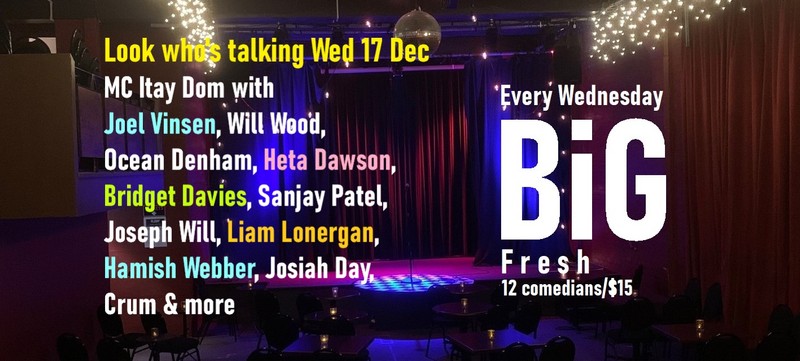 Wed 17 Dec : MC Itay Dom with Joel Vinsen, Will Wood, Ocean Denham, Heta Dawson, Bridget Davies, Sanjay Patel, Joseph Will, Liam Lonergan, Hamish Webber, Josiah Day, Crum & more