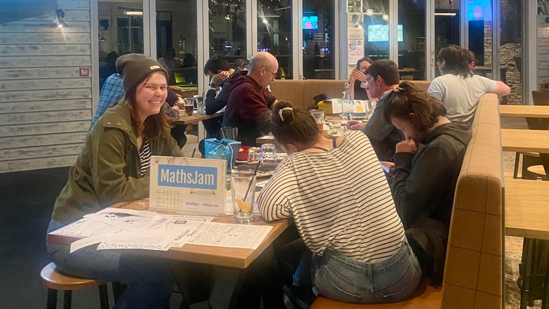 MathsJam is a monthly opportunity for like-minded self-confessed maths enthusiasts to get together in a pub and share stuff they like. Puzzles, games, problems, or just anything they think is cool or interesting. We don't have organised talks, planned activities or even strict timings - just turn up and join in. All welcome.