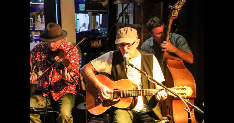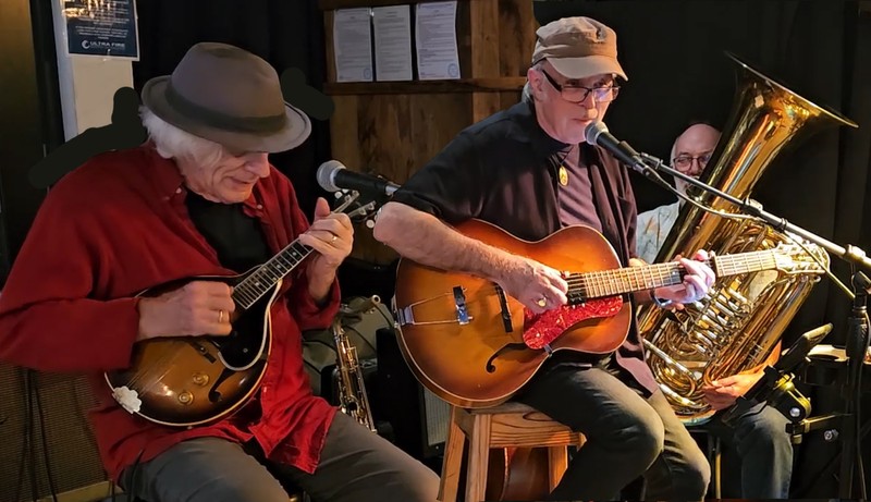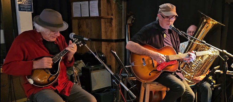 Robbie Lavën and Mike Garner present a show of acoustic blues, ragtime and Americana, featuring acoustic guitars, resonators, mandolin, fiddle, lap steel and washboard. They are joined by Grant Willis on bass and tuba.