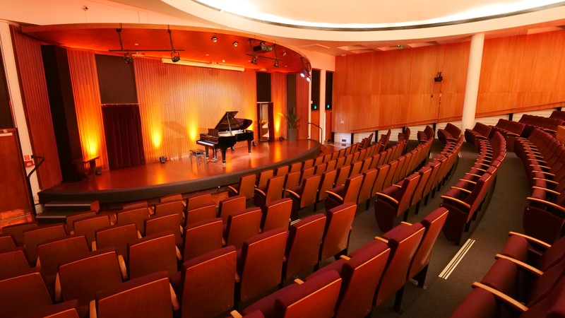 Fixed auditorium tiered seating for up to 300 and an open stage, the Concert Chamber is perfect for concerts, conferences and presentations. It has carpet underfoot and outstanding acoustics. It is also home to the Steinway grand piano, which can be rented as a part of venue hire.
